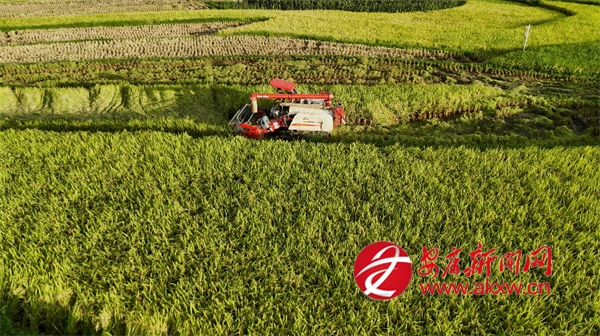 本網(wǎng)訊(通訊員 方亮 劉東)當(dāng)前正值水稻收獲的季節(jié),9月8日天氣轉(zhuǎn)晴,漢陰縣平梁鎮(zhèn)新河村的稻田里迅速熱鬧起來。村民們搶抓這一關(guān)鍵窗口期,以“機(jī)械化收割+傳統(tǒng)勞作”相結(jié)合的方式全力搶收,在連片金黃的稻田中,勾勒出一幅生動的秋日“豐”景圖。