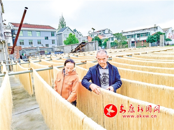 初冬的早晨,月河兩岸寒意漸濃。漢陰縣澗池鎮(zhèn)軍壩村村民俞緒平正在自家粉條加工廠忙碌著,他要趕著今天晴朗的天氣把新加工的粉條曬干!