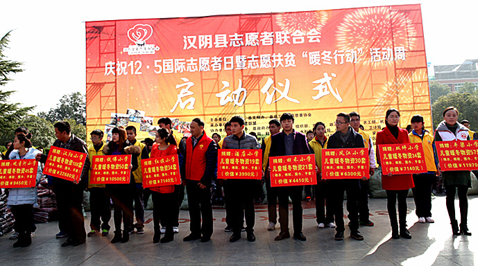12月5日,在漢陰縣舉行的慶祝12.5國際志愿者日暨志愿扶貧“暖冬行動”活動周啟動儀式上,共收到來自縣級相關(guān)部門和愛心人士捐贈的350份“暖冬兒童禮包&rdqu……