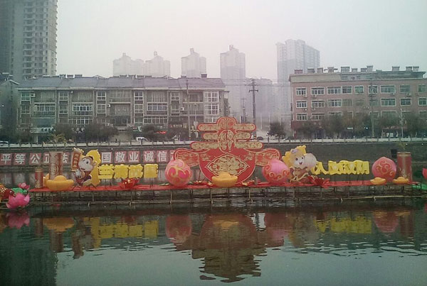 漢陰:月河水上搭舞臺 張燈結彩迎春節(jié)