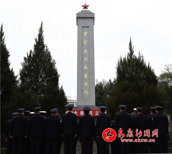 在巍然聳立的烈士紀(jì)念碑前,全體民警輔警整齊列隊(duì)、莊重肅立。民警代表首先向英雄烈士敬獻(xiàn)了花籃,全體人員脫帽肅立、鞠躬默哀,并依次上前瞻仰英雄烈士,通過回顧英雄事跡,表達(dá)對(duì)革命先烈的深切悼念和無限哀思。隨后,全體黨員同志站在烈士紀(jì)念碑前高舉右手,莊嚴(yán)宣誓,在鏗鏘誓言中重憶入黨入警初心、告慰英靈。