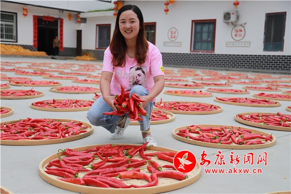 秋天的農(nóng)家,喜在一家老小,樂在農(nóng)家院落,醉在一片廣闊天地。那紅辣椒映紅了小院,點燃了村姑村嫂們的激情。