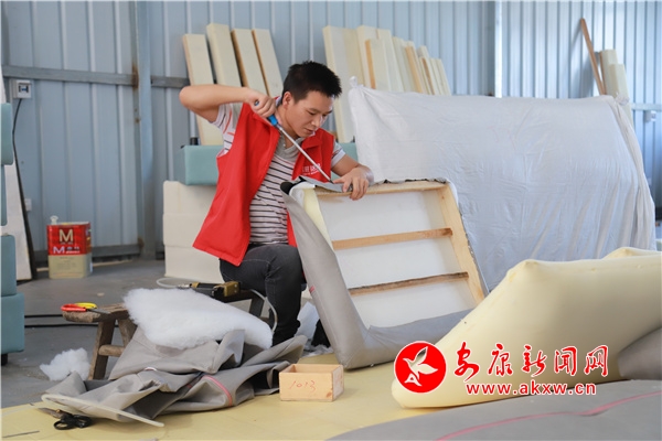 本網(wǎng)訊(通訊員 廖霖)伴著清晨的秋涼,嵐皋縣民主鎮(zhèn)銀盤村迎來新的一天。筆者走進(jìn)嵐皋縣家旺銘品家具有限公司加工廠,映入眼簾的是縫紉機前工人忙碌的身影,工人們正專注、熟練地縫制著沙發(fā)皮套,縫紉機“噠噠”響不停,她們有的在飛快地踩著縫紉機,有的在整理已經(jīng)加工好的沙發(fā),有的在切割木料,十幾名工人正在各自操作臺上有序忙碌。