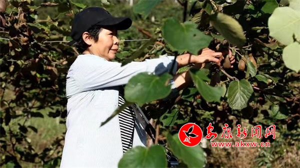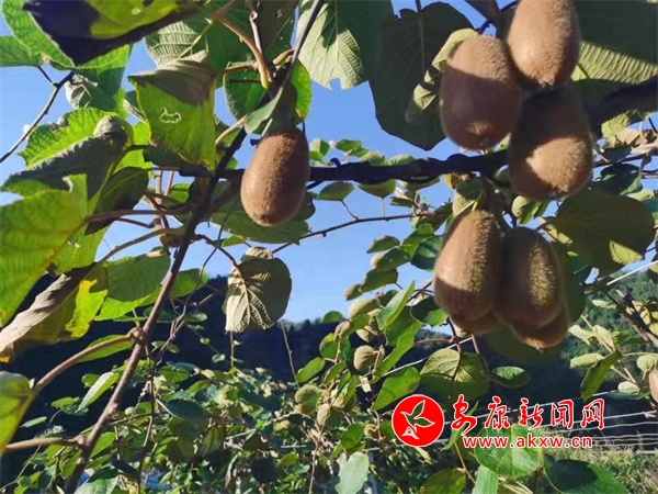 收成的喜風(fēng)吹過的不止是蠟燭村東桃林一個(gè)地方,在蠟燭山北邊的佐龍村晏家堡獼猴桃園區(qū)里,一個(gè)個(gè)毛絨絨的獼猴桃正擠在綠葉間散發(fā)著誘人清香。