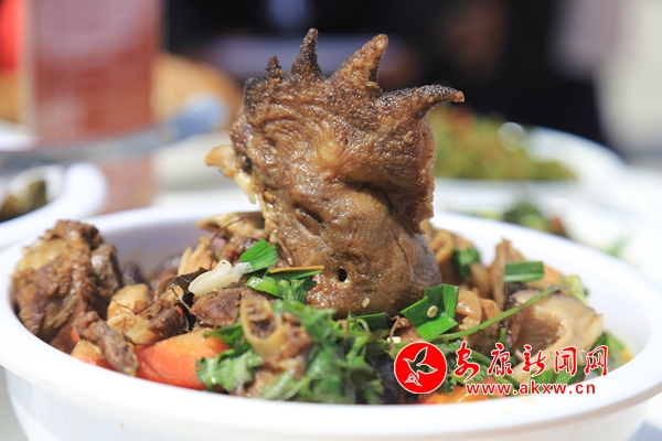 切食材、調(diào)配料……比賽現(xiàn)場,爐火熊熊,刀叉飛舞,熱氣蒸騰,各參賽隊伍的當(dāng)家大廚身著工作服,頭戴廚師帽,選手們摩拳擦掌,拿出了看家本領(lǐng),各自施展烹飪絕技,鍋碗瓢盆的悅耳聲響和人們的歡聲笑語融合在一起,廚師們嫻熟地制作著菜品,鍋碗瓢盆數(shù)次的端起放下,猶如一曲曲動聽的交響樂。不一會兒工夫,干煸羊腳、山藥燒排骨……一道道美食在“大廚們”的精心烹飪下出鍋了。他們將家鄉(xiāng)的烹飪手法與本地食材相結(jié)合,創(chuàng)新研發(fā)了許多新式菜肴。讓人覺得這不僅是一場美食盛宴,美食天下,更是一場視覺盛宴。