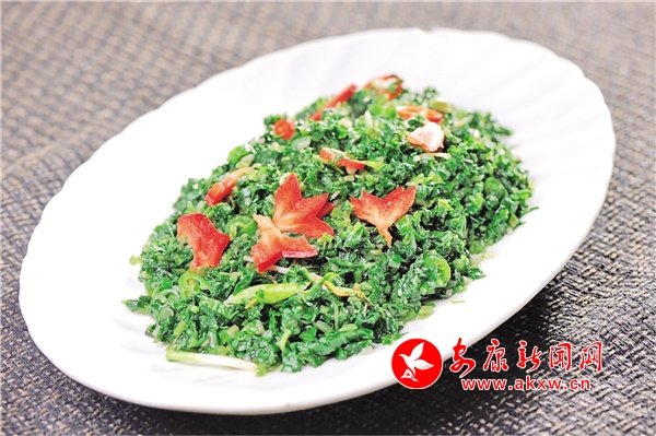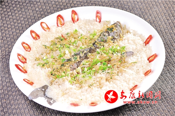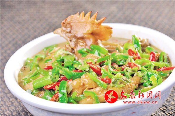 辣椒是農(nóng)家自產(chǎn)的時(shí)蔬,魚(yú)是嵐河水孕育出的鮮魚(yú),皆是原生態(tài)無(wú)公害食品。一個(gè)鮮綠,一個(gè)鮮嫩,色香味美,佳偶天成。