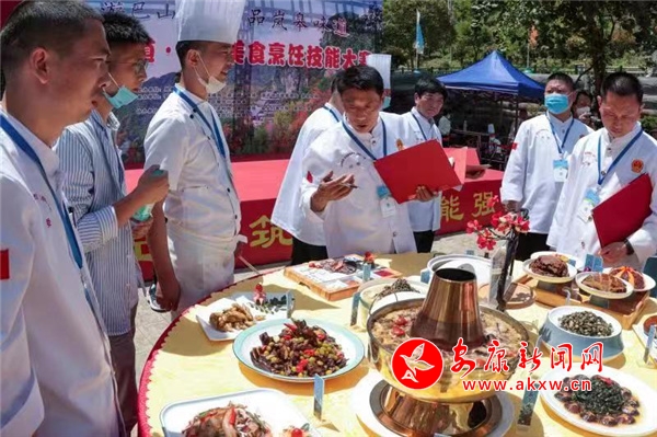 賽事方案出臺(tái)后,12個(gè)鄉(xiāng)鎮(zhèn)5個(gè)縣級(jí)部門(mén)組織了380名選手報(bào)名參加預(yù)賽,選拔出中餐熱菜選手50名,每人做兩道熱菜參加決賽,同時(shí)參加20桌宴席比賽。特色小吃參賽選手50人制作50個(gè)小吃參加小吃決賽。在預(yù)賽進(jìn)行過(guò)程中市烹飪餐飲行業(yè)協(xié)會(huì)會(huì)長(zhǎng)毛朝軍多次前往嵐皋預(yù)賽賽場(chǎng)實(shí)地勘察,提出賽場(chǎng)合理布局建議意見(jiàn)。并在賽前向參賽選手傳授烹飪技能,指導(dǎo)參賽選手優(yōu)化烹飪技術(shù)流程,提高菜品質(zhì)量。秘書(shū)長(zhǎng)楊紹軍自預(yù)賽開(kāi)始就住在嵐皋,同縣人社局一起研究確定預(yù)賽評(píng)判人員,確保比賽公開(kāi)、公平、公正。楊紹軍還先后多次應(yīng)邀參加人社局組織的落實(shí)任務(wù)工作會(huì),并且在大賽組委會(huì)工作群里提醒督促工作完成情況,解決比賽中遇到的具體問(wèn)題。與此同時(shí)還主動(dòng)到7個(gè)鄉(xiāng)鎮(zhèn)3個(gè)部門(mén)輔導(dǎo)參賽選手做好參賽作品。他在城關(guān)鎮(zhèn)賽區(qū)品嘗了老街涼面,覺(jué)得味道可口,有明顯的地域特色。深受市井百姓喜愛(ài)。但仍有改進(jìn)提高空間,他指導(dǎo)參賽選手在原材料、調(diào)味品選擇上優(yōu)中選優(yōu),幫助指導(dǎo)餐具選擇、擺盤(pán)設(shè)計(jì)等工作,由于他細(xì)致的指導(dǎo),參賽選手用心制作。結(jié)果這道小吃在比賽中一路向前,獲得嵐皋味道“十大名小吃”第一的好成績(jī),獲得了特色小吃金獎(jiǎng),參賽選手張賢彬也獲得“嵐皋名廚”榮譽(yù)稱(chēng)號(hào)。