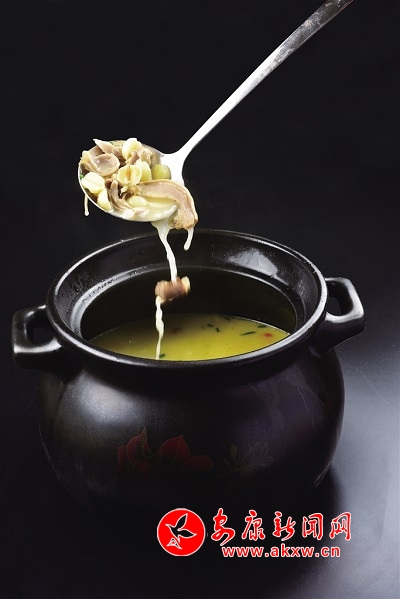 豬肚蓮子養(yǎng)生湯:將新鮮豬肚清洗焯水,蓮子取芯,加輔料用大火熬制成湯。豬肚為豬科動(dòng)物豬的胃,味甘,性溫,歸脾、胃經(jīng);蓮子為睡蓮科植物蓮的干燥成熟種子,味甘、澀,性平,歸脾、腎、心經(jīng)。豬肚蓮子湯自古以來就是一道食補(bǔ)菜,具有補(bǔ)脾止瀉、益腎澀精、養(yǎng)心安神的功效。