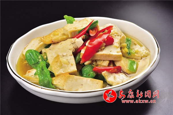 煎豆腐:將豆腐切成3厘米寬、5厘米長(zhǎng)、0.5厘米厚的大片,韭菜擇洗干凈,切成1厘米長(zhǎng)的小段,起鍋燒油,豆腐煎至兩面金黃,放入韭菜段,悶一分鐘即可,煎豆腐外表酥脆、內(nèi)里細(xì)嫩,香氣四溢,深受喜愛。