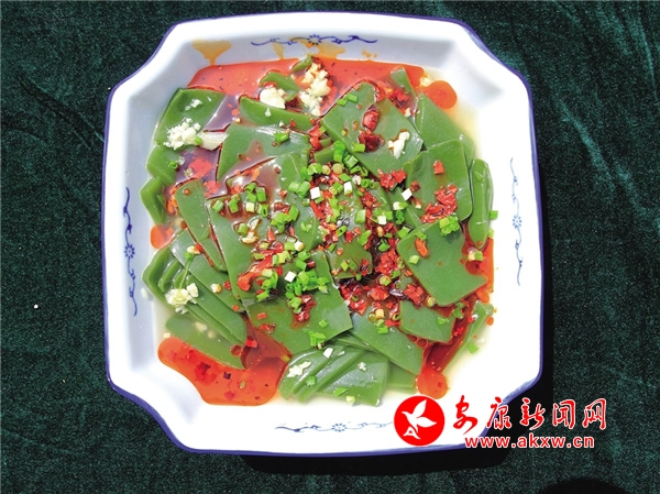 神仙豆腐:是用秦嶺、大巴山上生長(zhǎng)的一種野生灌木樹葉加淀粉做成的,性甘味苦,夏日吃神仙豆腐,可以清熱、解毒、活血。