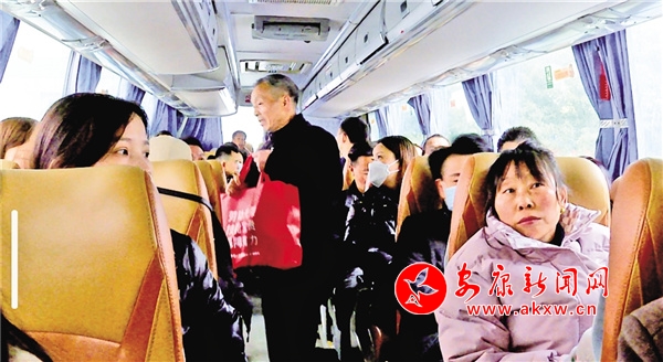 2月2日上午,在縣人社局發(fā)車現(xiàn)場,兩輛大巴一字排開,經(jīng)工作人員清點(diǎn)完人數(shù)確認(rèn)無誤后,返崗務(wù)工人員們帶著行李有序上車。