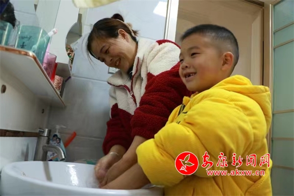 11月26日,鄭和香在給兒子洗手。陳延安/攝