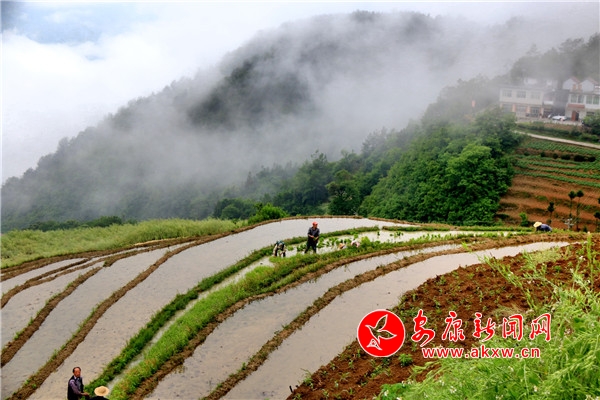 嵐皋:山村梯田美 農(nóng)夫插秧忙