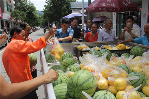 “這瓜多少錢一斤?”“不好意思,這是送給環(huán)衛(wèi)工人們的,不賣!7月18日,嵐皋縣眾達(dá)農(nóng)業(yè)園區(qū)工作人員載著一車新鮮的本地瓜果,來到建設(shè)路縣環(huán)衛(wèi)保潔公司門口……