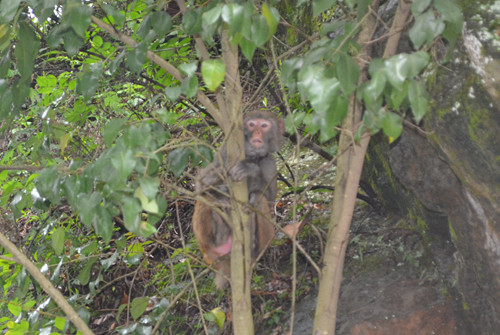 嵐皋四季鎮(zhèn)獼猴下山路邊覓食
