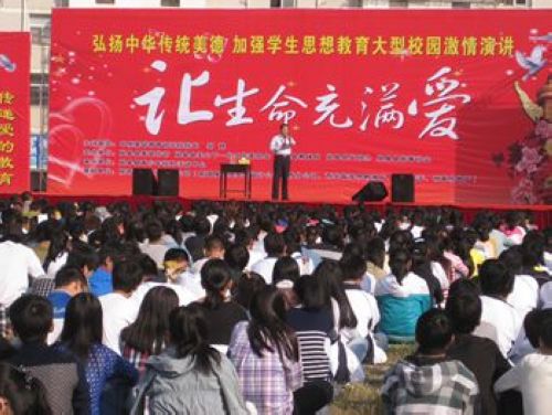 10月10日,由縣委宣傳部、嵐皋縣關(guān)心下一代工作委員會(huì)、縣教體局、縣文明辦、縣慈善協(xié)會(huì)聯(lián)合舉辦的“讓生命充滿愛(ài)”大型校園激情演講活動(dòng)在我縣體育場(chǎng)隆重舉行!