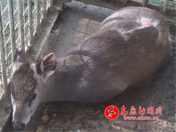 據(jù)了解,當(dāng)時(shí)四畝地村村民茍興成正沿著河邊往家走,突然發(fā)現(xiàn)有一動(dòng)物在河里掙扎,仔細(xì)一看好像是一頭“青麂子”掉河里了,老茍立即喊了幾個(gè)村民一起將它救上了岸,村民們發(fā)現(xiàn)它受傷了,于是報(bào)了警,附近寧陜榮庚生物科技有限公司林麝養(yǎng)殖場的工作人員得知消息后拿來了養(yǎng)殖場的工具,對(duì)“青麂子”進(jìn)行了暫時(shí)安置。