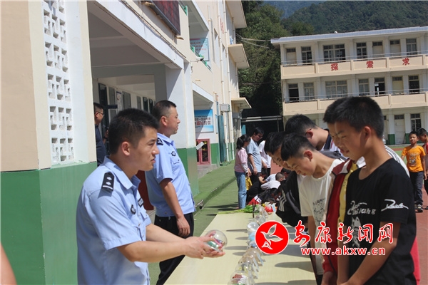 活動中,民警向師生們發(fā)放禁毒倡議書,現(xiàn)場通過圖片及仿真毒品讓學(xué)生認(rèn)識海洛因、冰毒、搖頭丸等形形色色的毒品,使廣大學(xué)生進(jìn)一步認(rèn)清毒品對人體和家庭的危害及對社會的影響,提高抵制毒品的自覺性。