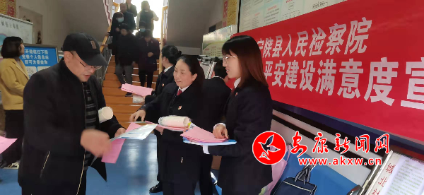 “我們是寧陜縣檢察院的工作人員,如果您接到12340來電,對寧陜平安建設滿意度情況進行調查,即平安建設九率一度,您就是平安寧陜的代言人,您的一聲滿意是對我們工作的認可和支持。”寧陜縣檢察院的一名工作人員對一名剛投完票的大爺說,熱情地送上宣傳冊、《建設平安和諧寧陜致全縣人民的一封信》以及宣傳紙杯。