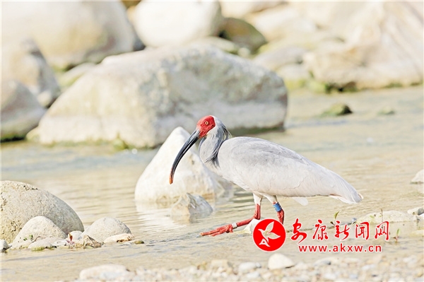那是2007年8月份的一天,晚飯后,鐘家鑫出去鍛煉,走到縣城拱橋時,突然看到河里的石頭上,站著一只鳥,“羽毛是灰色的,還有白色,嘴很長還是紅顏色的。”鐘家鑫說。