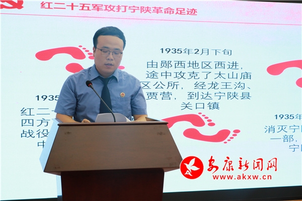 此次黨日活動是寧陜縣檢察院結合常態(tài)化開展“尋訪革命舊址 保護革命文物 傳承革命精神”活動,以講解寧陜紅色故事,講述辦案體悟為主要內容,圍繞尋訪環(huán)節(jié)中干警的親身經(jīng)歷、親身感受結合公益訴訟檢察工作進行演講,從而在尋訪中體悟黨和人民英勇奮斗的光榮歷史,及時發(fā)現(xiàn)案件線索;在辦案中加深對革命傳統(tǒng)和革命文化的體悟,強化做好保護革命文物工作的政治自覺、法治自覺、檢察自覺;在體悟中傳承紅色基因、感受信仰力量,把活動成效轉化為對黨忠誠、履職奉獻、擔當作為的實際行動。