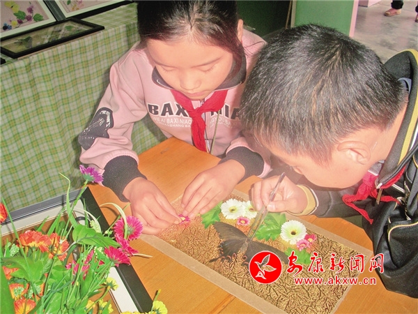 學(xué)生制作蝴蝶工藝品
