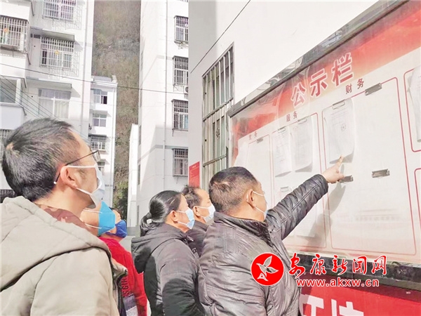 群眾正在公開欄前查看村集體經濟組織公示情況