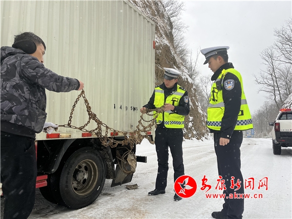 組織廣貨街交警中隊(duì)、旬陽壩交警中隊(duì)和巡查組民輔警在345國道石溝梁路段及210國道平河梁、月河梁、腸子峽等重點(diǎn)路段流動巡邏檢查。對未掛防滑鏈條的車輛,要求停車掛好防滑鏈條后再上路行駛,對不會安裝防滑鏈條的車主,民警手把手教司機(jī)安裝防滑鏈條,并叮囑駕駛?cè)藭r刻注意冰雪路面行車安全,提高安全行車意識。同時,會同公路部門、鎮(zhèn)村在路面撒鹽融冰,清掃積雪,并要求各鎮(zhèn)勸導(dǎo)站開展交通安全勸導(dǎo),全力預(yù)防道路交通事故發(fā)生。