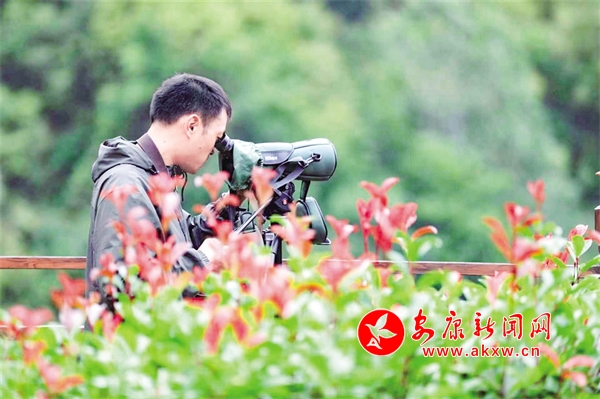 李夏利用專業(yè)望遠鏡觀察朱鹮