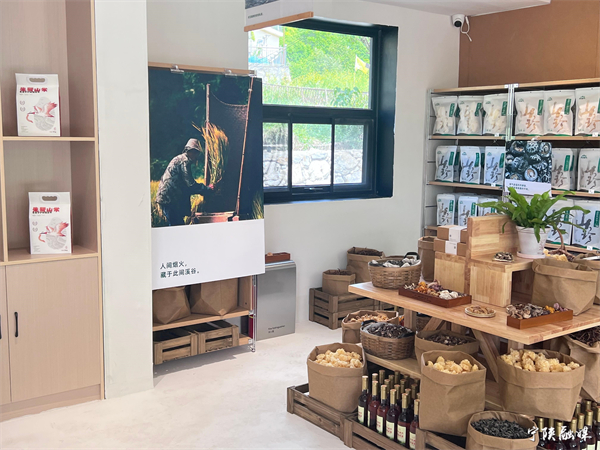 伴隨著一陣噼里啪啦的鞭炮聲,5月1日,城關(guān)鎮(zhèn)“八畝溪谷”精品民宿投入試運(yùn)營。走進(jìn)民宿的生態(tài)社區(qū)服務(wù)中心,右側(cè)的山珍展示區(qū)吸引了群眾和游客的目光,木耳、山菌、朱鷺大米、五味子酒等當(dāng)?shù)靥禺a(chǎn)受到游客青睞。