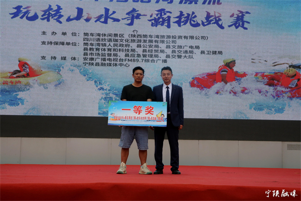 啟動儀式結(jié)束后,筒車灣暗河漂流“玩轉(zhuǎn)山水爭霸挑戰(zhàn)賽”開賽。來自省內(nèi)的200余名選手,兩人一組乘坐皮筏艇,從起點(diǎn)開始沿漂流河道漂至終點(diǎn),用時(shí)最短者獲勝。比賽中,參賽選手按時(shí)間間隔順序出發(fā),展開激烈角逐,最終決出一等獎(jiǎng)一名,二等獎(jiǎng)兩名,三等獎(jiǎng)三名。