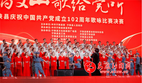 為慶祝中國共產(chǎn)黨成立102周年,6月29日晚,寧陜縣在縣城體育場隆重舉行“唱支山歌給黨聽”慶祝中國共產(chǎn)黨成立102周年歌詠比賽決賽,用嘹亮的歌聲回顧黨的奮斗光輝歷程,展望偉大復(fù)興光明前景。