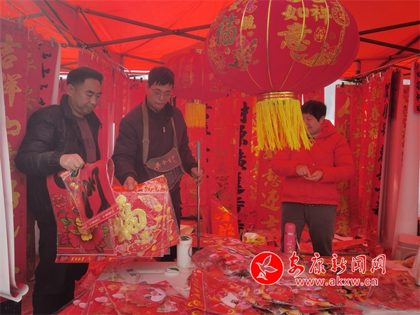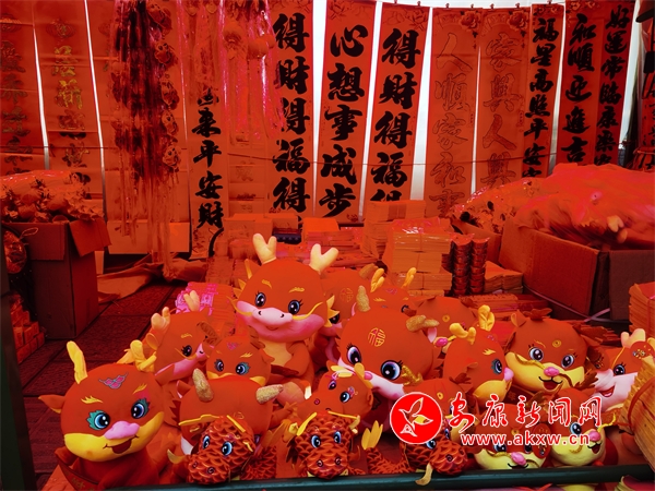 攤主劉女士說:“雖然今年過年時(shí)間比較晚,但是我們的年貨已經(jīng)早早備齊了,最近大家買對(duì)聯(lián)的熱情高漲,在新的一年祝愿大家龍年行大運(yùn)、發(fā)大財(cái),龍年吉祥。”