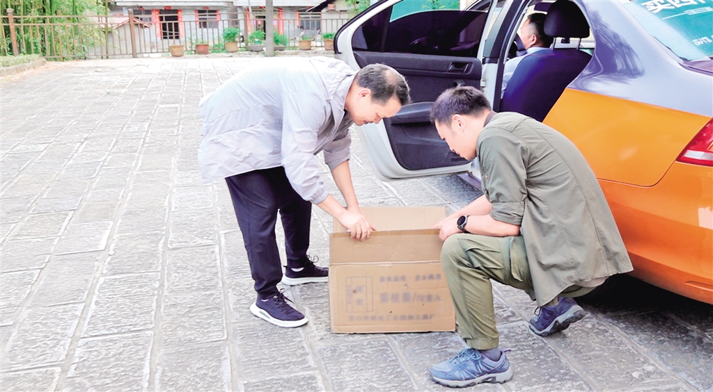 漢陰縣林業(yè)局相關負責人將朱鹮送到寧陜縣朱鹮野化放飛基地管理站。