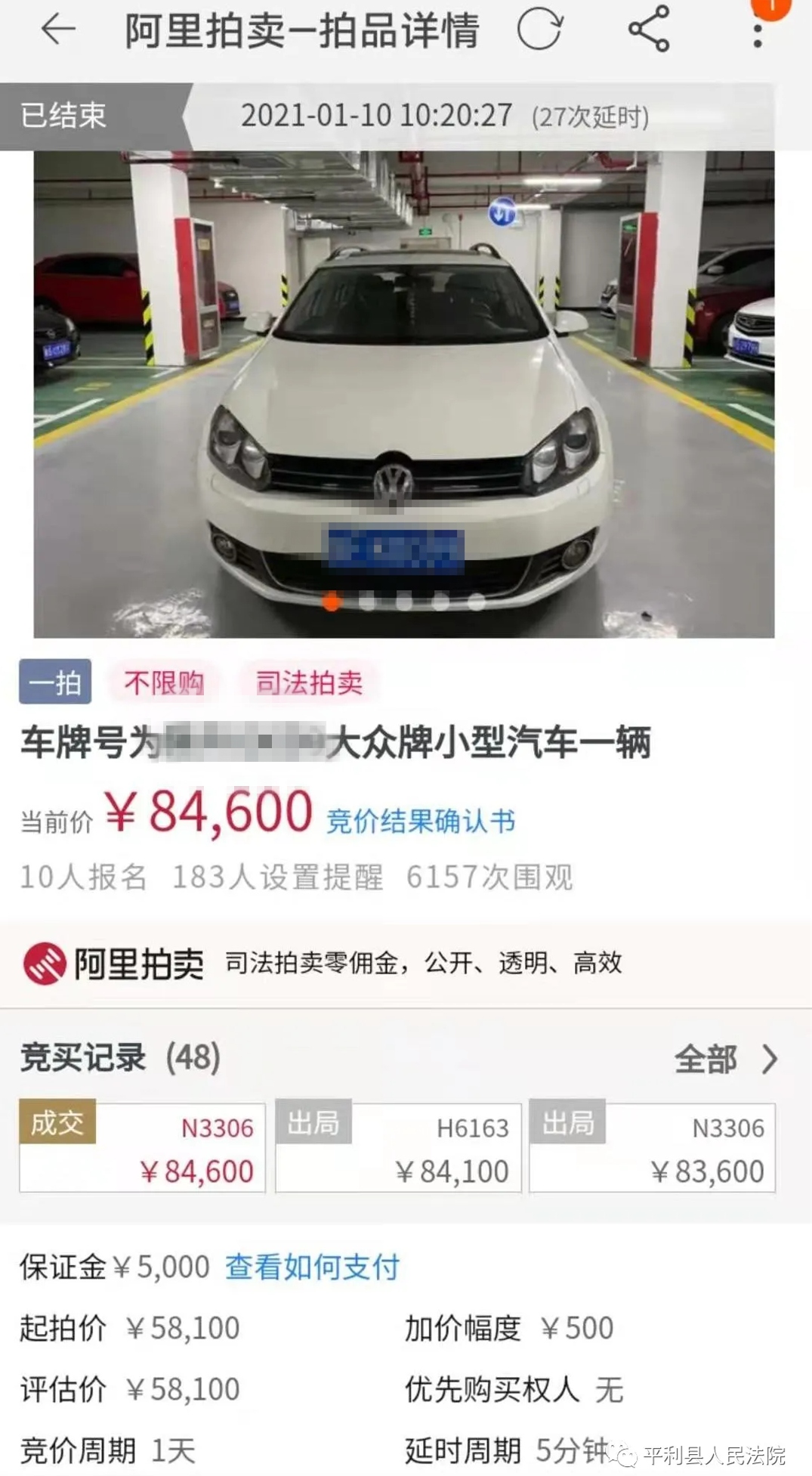 本網訊(通訊員 鄭欽)成交了!1月10日上午十點二十分,平利法院通過淘寶網網絡司法拍賣的一部大眾牌小型汽車以高出評估價百分之四十五的價格成功拍出。