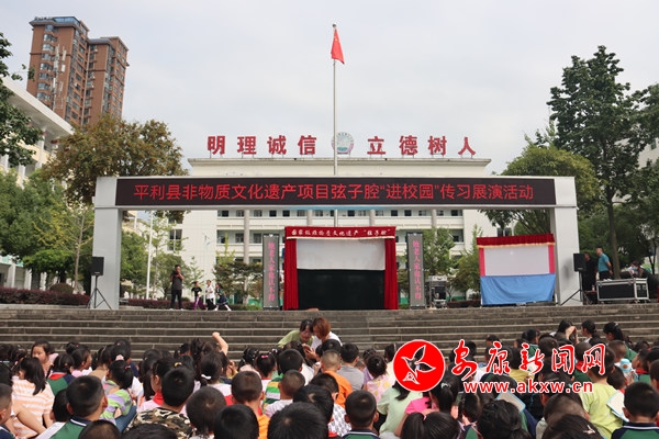 9月3日,平利縣國家級非物質文化遺產保護項目“平利弦子腔”牛王班社走進平利縣城關三小,為兩千余名師生現(xiàn)場傳習展演。當天,老藝人們?yōu)楝F(xiàn)場師生表演了傳統(tǒng)劇目《真假美猴王》和《戰(zhàn)長沙》。(通訊員 陳少乾)emy安康新聞網(wǎng)