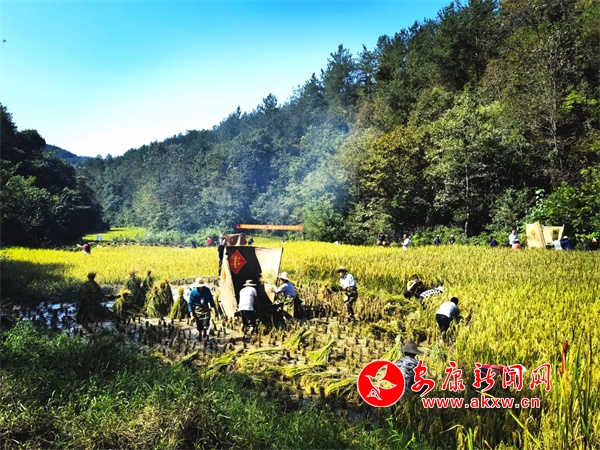 本網(wǎng)訊(記者 張喬)9月21日,平利縣西河鎮(zhèn)女媧山村金竹溝原生態(tài)水稻田里熱鬧非凡,飽滿的谷穗壓彎了稻桿,500余畝原生態(tài)水稻將在當(dāng)天開鐮收割,以此慶祝 “豐收節(jié)”的到來(lái)。