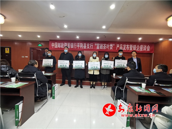 會(huì)議現(xiàn)場,郵儲(chǔ)銀行平利縣支行為6家茶業(yè)企業(yè)開展了“富硒茶葉貸”授信工作,合計(jì)金額300萬元,并現(xiàn)場受理14筆530萬元貸款。