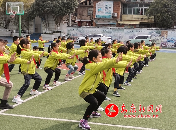 本網訊(通訊員 劉恩姬 熊芳)“嘿、哈……”平利縣城關小學操場上傳來同學們洪亮有力的聲音。本學期,為了進一步落實“雙減”政策,平利縣城關小學深入推進武術進課堂活動,凸顯陽光體育辦學特色,提高學生的體質健康水平。