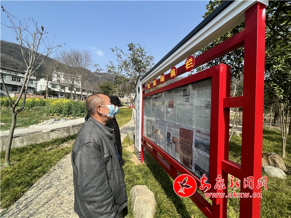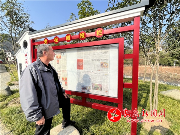 如今,在各村村委會(huì)的閱報(bào)欄里,前一天的《人民日?qǐng)?bào)》《陜西日?qǐng)?bào)》《安康日?qǐng)?bào)》一應(yīng)俱全,村民晨練出門、農(nóng)忙歸來(lái),都站在閱報(bào)欄前,看一看、念一念、讀一讀,或獨(dú)立思考,或踴躍討論。