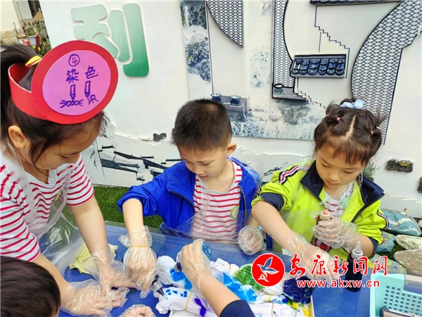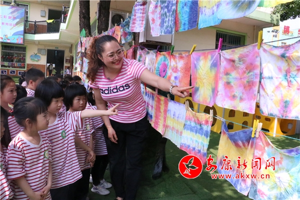 為了讓孩子們傳承傳統(tǒng)制作工藝,在親身體驗(yàn)中感受扎染的圖案美、色彩美和形式美,培養(yǎng)其動(dòng)手能力和創(chuàng)意表現(xiàn)力,5月26日,平利縣幼兒園開展了慶“六一”系列活動(dòng)中的重要一項(xiàng)——“繽紛扎染 布里生畫”手工扎染活動(dòng)。