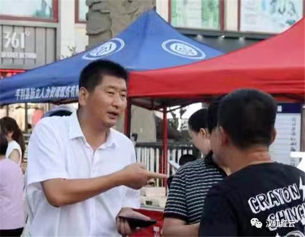 平利縣新立人力資源公司經(jīng)理楊付權(quán)與應(yīng)聘者交談。