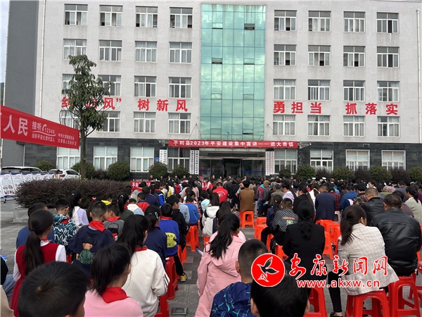 為了增強宣傳教育效果,該校還組織師生參與了“平利縣2023年平安建設(shè)集中宣講——進大貴鎮(zhèn)”活動,要求人人當好“平安大貴代言人”、正確接聽12340電話,F(xiàn)場分發(fā)了宣傳資料,同時引導參會人員觀看了精美的平安建設(shè)宣傳展板,將平安建設(shè)的知識點以圖文并茂的形式呈現(xiàn)給師生和群眾,幫助他們更好地理解和記憶。
