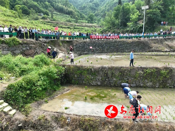 眾多游人及附近村民趕來(lái)體驗(yàn)手工插秧,參加別開生面的田間趣味比賽,感受美麗鄉(xiāng)村的建設(shè)成果和傳統(tǒng)農(nóng)事魅力。上午11時(shí)許,隨著裁判一聲令下,插秧比賽正式拉開帷幕,稻田頓時(shí)變?yōu)橘悎?chǎng),來(lái)自全鎮(zhèn)10個(gè)村的插秧選手們,卷起褲管,擼起袖子,赤腳走進(jìn)稻田,一手持秧苗,一手飛快地分苗、插秧,大家你追我趕,紛紛拿出看家本領(lǐng)一展高下,觀賽者們加油助威,現(xiàn)場(chǎng)一派熱火朝天的勞動(dòng)場(chǎng)景。