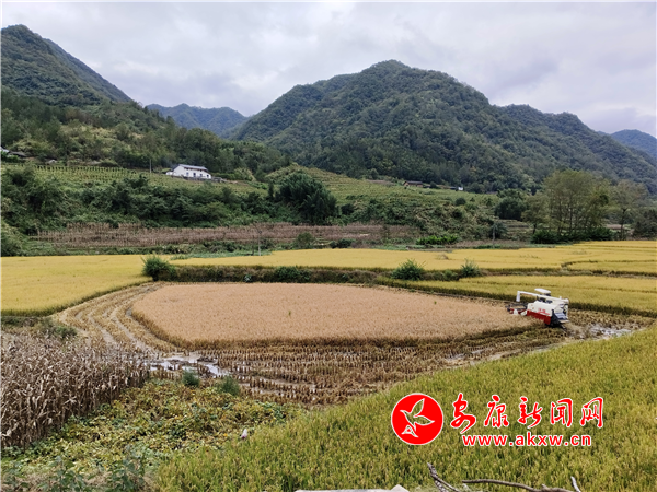 本網(wǎng)訊(通訊員 李安邦 陳子帆)秋風(fēng)送爽,五谷飄香。平利縣城向南約30公里,廣佛鎮(zhèn)田野阡陌之間,映入眼簾的便是掛滿稻穗的金黃稻田,一體化收割機在其中來回穿……