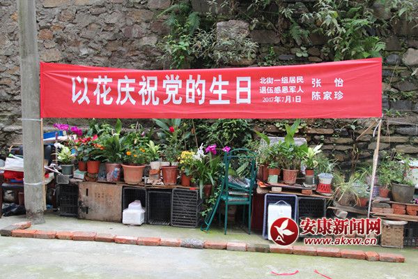 安康新聞網(wǎng)訊(趙杰 陳媛 劉禮偉)驕陽似火的七月,石泉縣城處處涌動著熱浪,而在濱江大道通往明清古街的小南門巷口,一排人為擺放的綠植鮮花卻給盛夏帶來了一絲清涼和別樣風(fēng)景,一掛醒目的條幅——“以花慶祝黨的生日”更是引得來往過路的人紛紛側(cè)目停留。