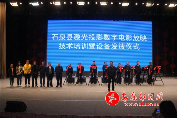 本網訊 4月20日,石泉縣激光投影數(shù)字電影放映技術培訓暨設備發(fā)放儀式在石泉大劇院舉行。設備廠家技術人員現(xiàn)場進行了新設備的組裝、調試和放映技術培訓。當晚在“金蠶小鎮(zhèn)”池河鎮(zhèn)西苑社區(qū)放映了故事片《古田軍號》。
