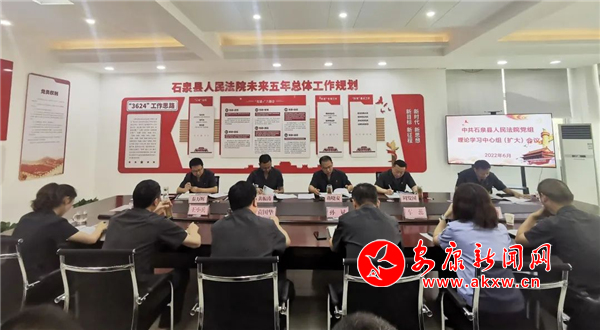 本網(wǎng)訊(通訊員 李紅怡)6月24日上午,石泉法院召開黨組理論學(xué)習(xí)中心組學(xué)習(xí)(擴大)會,專題學(xué)習(xí)傳達貫徹全省中基層法院院長培訓(xùn)班精神,并就貫徹落實會議精神進行了安排部署,切實推動會議精神在全院落地生根、抓實見效。