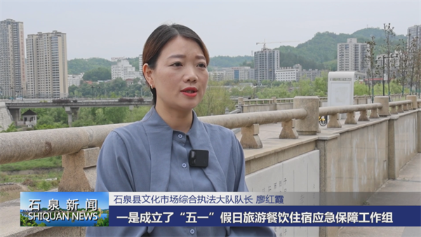 石泉縣文化市場綜合執(zhí)法大隊隊長 廖紅霞:為做好假日旅游工作,一是成立了“五一”假日旅游餐飲住宿應急保障工作組,對全縣賓館酒店民宿等住宿場所,接待能力情況進行了全面的摸底,同時把黨校、職中等學校作為住宿應急保障場所,準備了一定數(shù)量的帳篷被褥等應急物資。二是從2月29號晚上開始,全縣客流量過多,住宿出現(xiàn)了供不應求的情況,我們專門組建了假日旅游餐飲住宿保障微信工作群,積極通過各種渠道實時收集住宿接待及游客需求情況,動態(tài)發(fā)布剩余房源,針對游客需求及時回應,快速進行協(xié)調處理,妥善的安置游客的住宿需求。