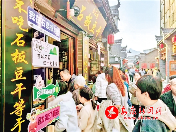 △ 春節(jié)期間,在石泉秦巴老街,石板豆干等石泉特色小吃深受游客青睞。孟少猛 攝